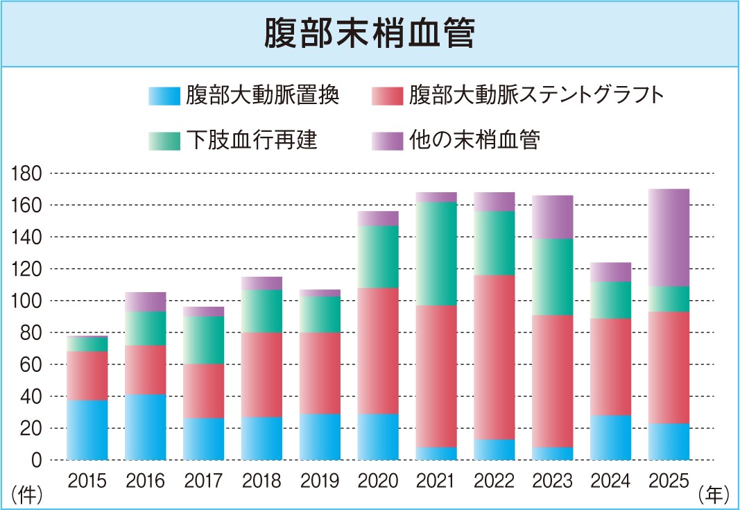 その他、末梢動脈閉塞疾患に対する血行再建術、透析バスキュラーアクセス手術なども行っています。